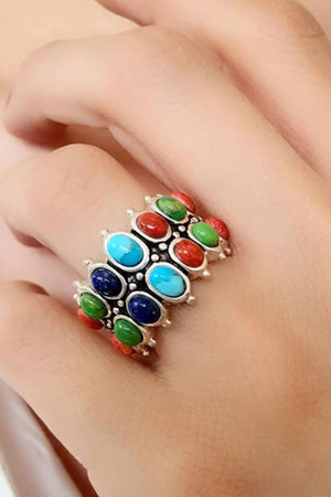Doğal Lapis Mercan Turkuaz Tasli Tasarım Yüzük