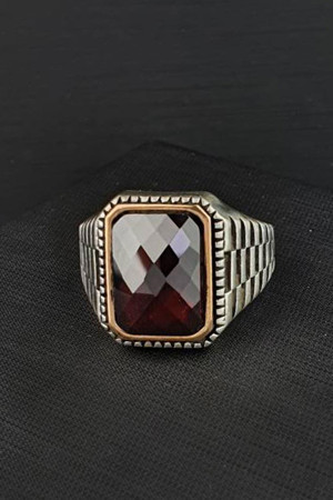 Faset Kesim Kırmızı Zirkon Taşlı 925 ayar Gümüş Erkek Yüzük