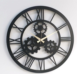 Otantik Siyah Ahşap Dekoratif Sessiz Dişli Çarklı Duvar Saati 40 - Image 1