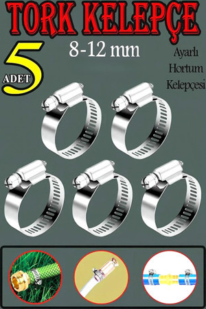 Tork Ayarlanabilir Kelepçe 8-12 / 5 Adet / Çap: 8-12 Mm
