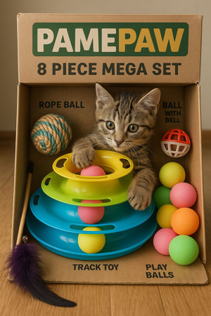 8Li Set: Sarma Topu+4Lü Renkli Top+Kedi Oltası+3 Katlı Oyuncak +Çıngıraklı Top