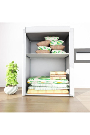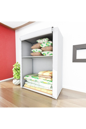 Özel Tasarım Güçlendirilmiş Çelik Yapım Raflı Yorgan Hurcu, Yüklük, Gri Renk Bez Dolap