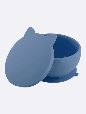 KitTen Vakum Tabanlı Kapaklı Silikon Kase - MaviStandart
