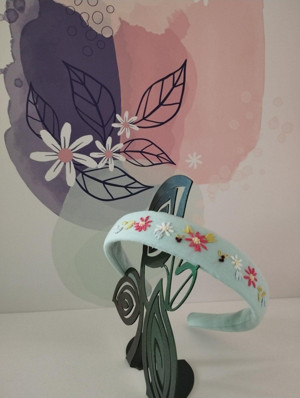 Çiçek Motifli Taç - Bebe Mavisi - Organik & El Yapımı