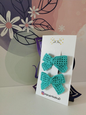 2'Li Set Örgü Fiyonk Toka - Mavi - Organik & El Yapımı