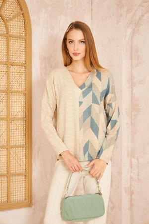 Kadın Bej Oversize Salaş V Yaka Triko Kazak 3481230