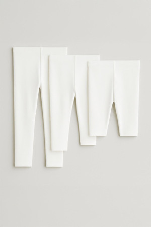 %95 Pamuk 3'lü Kız Çocuk Tayt Takımı - Uzun, Kapri ve Şort Model Ekru