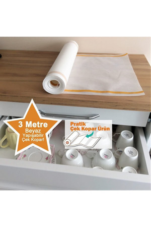 Pratik Kopar Şeffaf Beyaz 3M Yapışkanlı Çekmece Dolap Içi Düzenleyici Raf Örtüsü Kaymaz Kaydırmaz