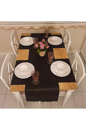 Yıkanabilir Pratik Amerikan Servisi 12 Kişilik Supla + Runner Takımı Mutfak Masa Örtüsü Siyah