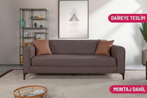 Ferranti Yataklı Sandıklı Üçlü Kanepe Kahverengi