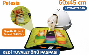 Kedi Tuvalet Önü Elekli Paspas 60X45 cm – Kedi Kumu Tutucu, Sepette Üç Kedi Desenli