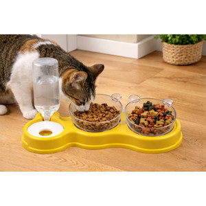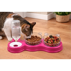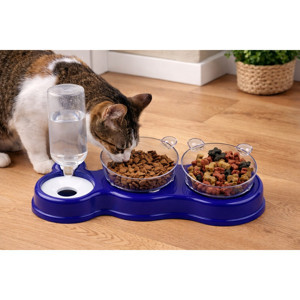 Çift Hazneli 3’lü Kedi ve Köpek Mama & Su Kabı – Otomatik Su Hazneli, 500 ml