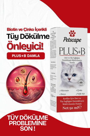 Plus+B Kedi Tüy Vitamini - Biotin & Çinko Destekli Tüy Dökülmesini Azaltan Damla 50ml