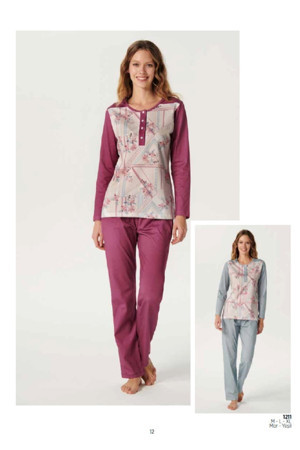 Kadın Uzun Kol Pijama Takımı Pamuklu Mevsimlik