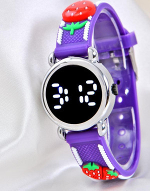 Şık Mor Silikon Kordon (04-09 Yaş ) Şirin Dijital Çocuk Kol Saat Hediyelik ST-304158