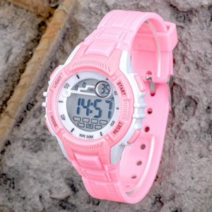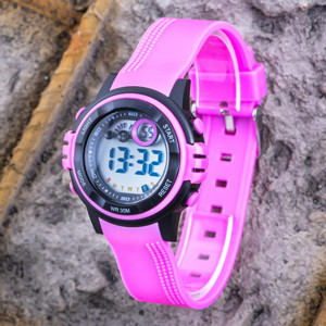 Dijital Kız Çocuk Saati, Su Geçirmez Pembe Renk Genç Kol Saati Alarm, Takvim, Kronometre ST-304394