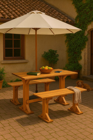 Pinoxi Masif Ahşap Bahçe Masa Bahçe Takımı Masa 2 Adet Bank Ceviz Renk - Image 1
