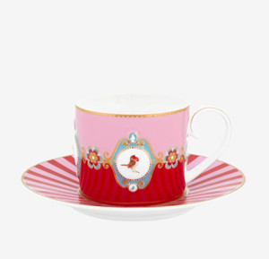 Love Birds Kırmızı Pembe Porselen Çay Fincanı 200 Ml