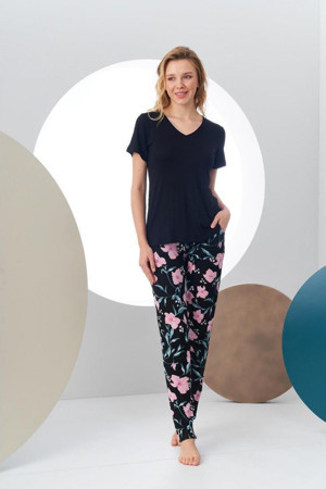 Pjs Kadın Kısa Kollu V Yaka Çiçek Desenli Pijama Takım - Image 1