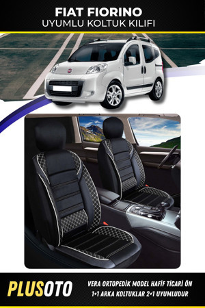 Fiat Fiorino (2+1) Ticari Uyumlu Vera Serisi Siyah Beyaz Oto Koltuk Kılıfı 5Li Takım Set M-208