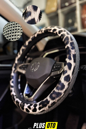 Kadınlara Özel Leopar Desen Daimond Taşlı Geçmeli Direksiyon Kılıfı Kolay Kullanım