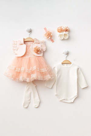 Kız Bebek Çiçekli Ceketli 6 Parça Lüks Mevlüt Elbisesi Yenidoğan Elbise Bebek Hediyelik
