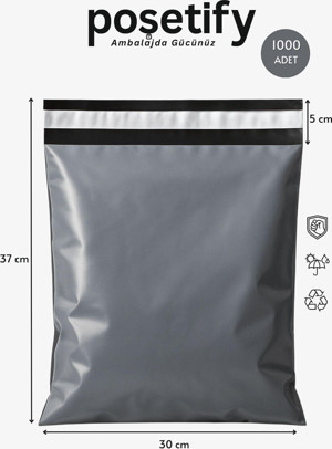 Gri Cepsiz Kargo Poşeti 30X37+5 Cm | Yapışkan Bantlı Kargo Zarfı | 1000’Li E-Ticaret Poşeti