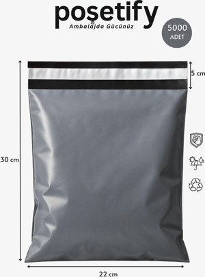 Gri Cepsiz Kargo Poşeti 22X30+5 Cm | Yapışkan Bantlı Kargo Zarfı | 5000’Li E-Ticaret Poşeti