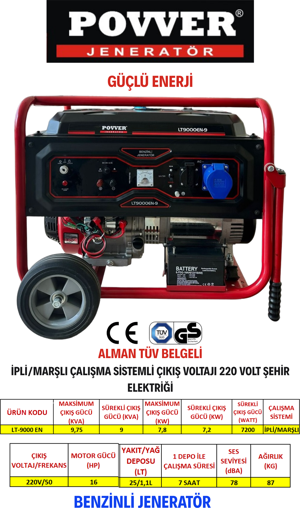 Lt9000 En 9,75 Kva Benzinli Jeneratör Ipli Marşlı