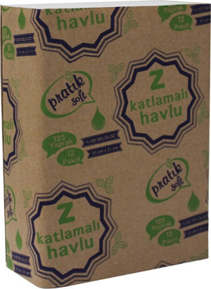 Pratiksoft Z Katlama Dispenser Kağıt Havlu 125 x 12 Paket