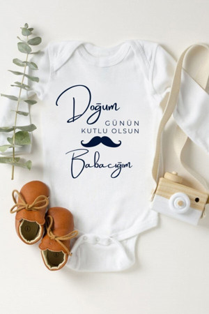 Unisex Bebek Doğum Günün Kutlu Olsun Babacım Pamuklu Beyaz Bebek Body Zıbın