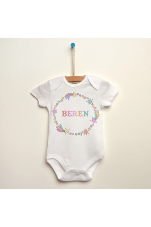 Unicorn Desenli Kişiye Özel Baskılı Organik Pamuklu Bebek Body Zıbın