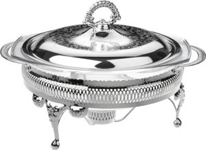 İngiliz Gümüşü Isıtıcılı Yuvarlak Yemek Servis 29.5 x 23.5 x 19.5 cm
