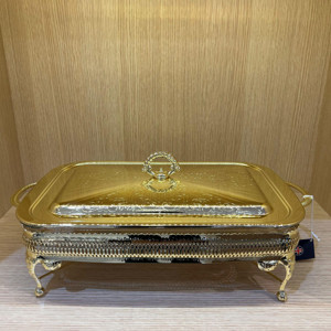 Altın Kaplama Isıtıcılı Dikdörtgen Yemek Servis 46 x 25 x 19 cm