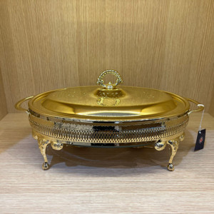 Altın Kaplama Isıtıcılı Oval Yemek Servis 35 x 22 x 18.5 cm