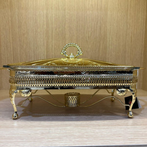 Altın Kaplama Isıtıcılı Dikdörtgen Yemek Servis 38 x 20 x 18.5 cm