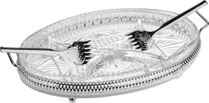 İngiliz Gümüşü Cam Üç Bölmeli Saplı Sunum Seti 23 cm