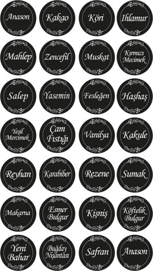 78 Adet Beyaz Yuvarlak Baharat Bakliyat Kavanoz Etiketi 4X4 Cm Sticker