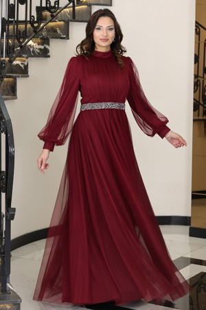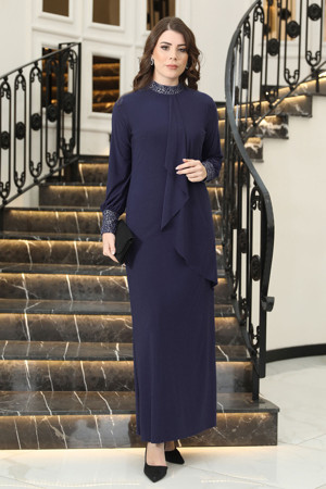 Taş Detaylı Lavinni Tesettür Abiye Elbise
