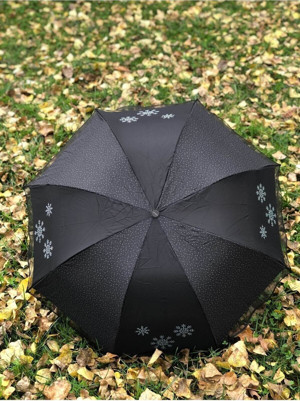 Rüzgarda Kırılmayan Kar Tanesi Desenli Puantiye Detaylı Siyah Kadın Şemsiye