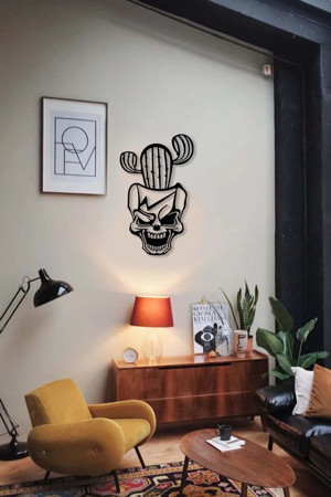 kurukafalı Kaktüs Figürlü Metal Tablo - Gotik Dekoratif Metal Duvar Tablosu - 40X65 Cm