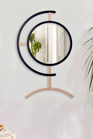 dekoratif Metal Yuvarlak Duvar Aynası - Trend Geometrik Ayna - Duvar Dekor 45X69 Cm