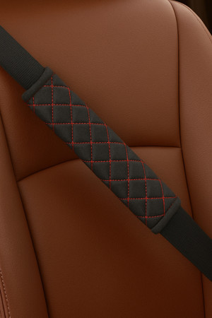 2 Adet Emniyet Kemeri Kılıfı Emniyet & Kemer Pedi (Tay Tüyü Kumaş)(Siyah-Kırmızı)