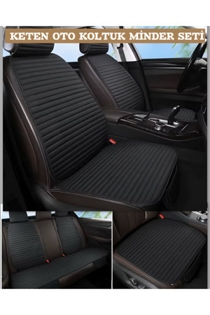 Keten Cepli &Terletmez Oto Koltuk Minder Seti -Koltuk Koruma Kılıfı-Ön Ve Arka Koltuk Tam Set(Siyah)