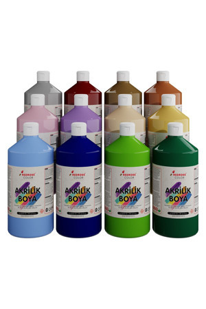 Pastel Renkler Akrilik Boya 12'Li Set 12X1000Gr, Dekoratif Hobi Amaçlı Sanatsal Canlı Renkler