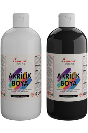 Siyah-Beyaz Akrilik Boya Seti, 2'Li Set 2X500Gr Dekoratif Hobi Amaçlı Sanatsal Canlı Renkler