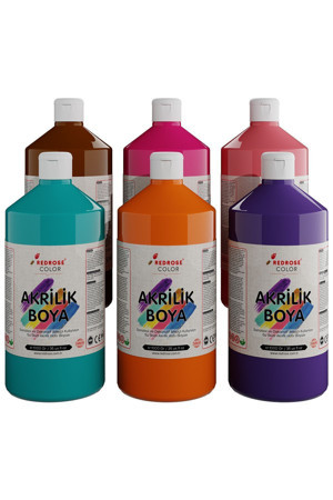 Tamamlayıcı Renkler Akrilik Boya Seti, 6'Lı Set 6X1000Gr, Dekoratif Hobi Sanatsal Canlı Renkler