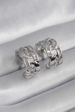 Pirinç Gümüş Renk Zirkon Taşlı Zincir Model Kadın Küpe