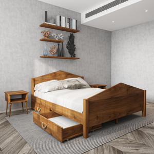Milano Model Dört Çekmeceli Ceviz Renk Çam Ahşap Karyola 120x200 cm