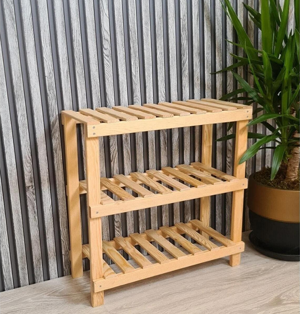 Dekoratif 3'lü Doğal Ahşap Ayakkabılık, Antre, Balkon Düzenleyici Raf